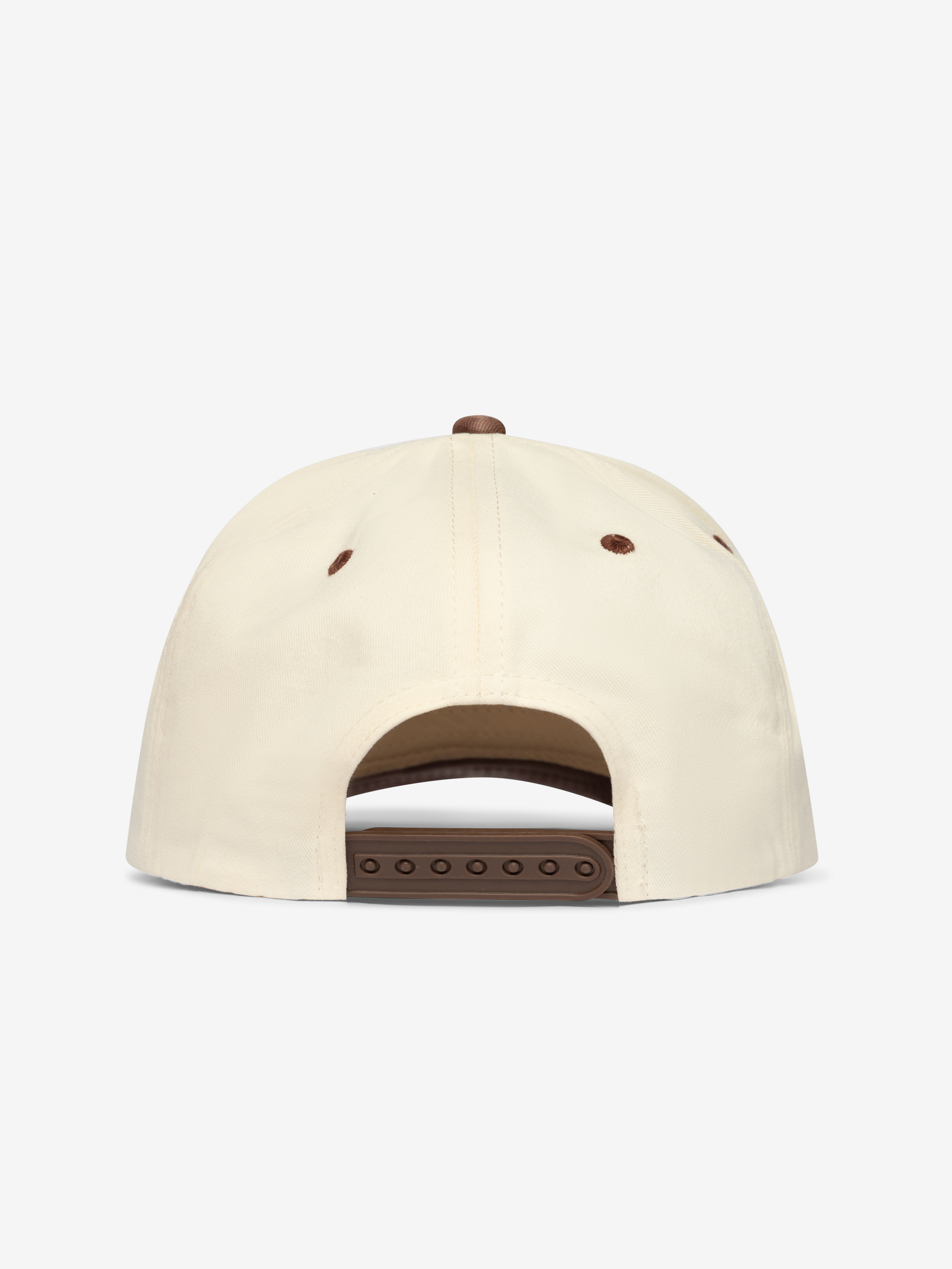 Structured 5 panel snapback with tie dye bill and embroidered logo.